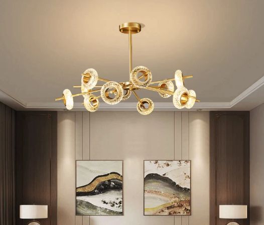 Crown Crystal Modern Chandelier in brass antique finish with in built led with 12 light