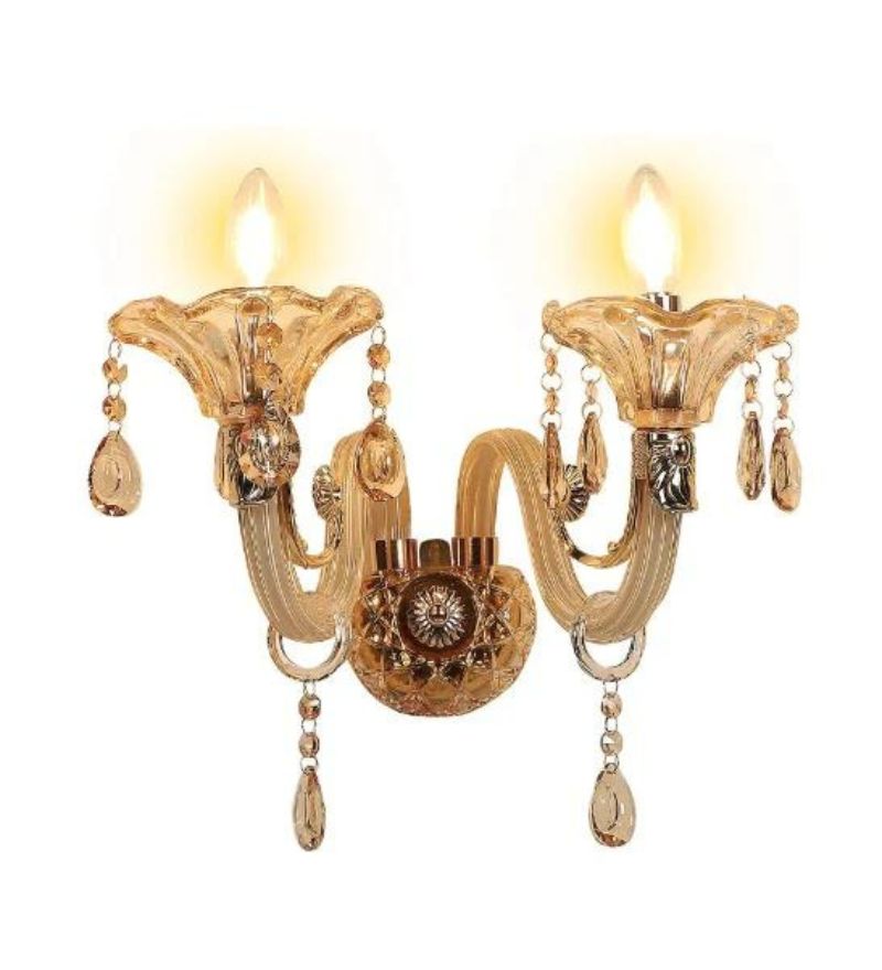 Enhance your living spaces with the LUMINA Italian Double Arm Wall Light in Amber Gold Finish with Amber Crystal, where timeless elegance meets superior craftsmanship.