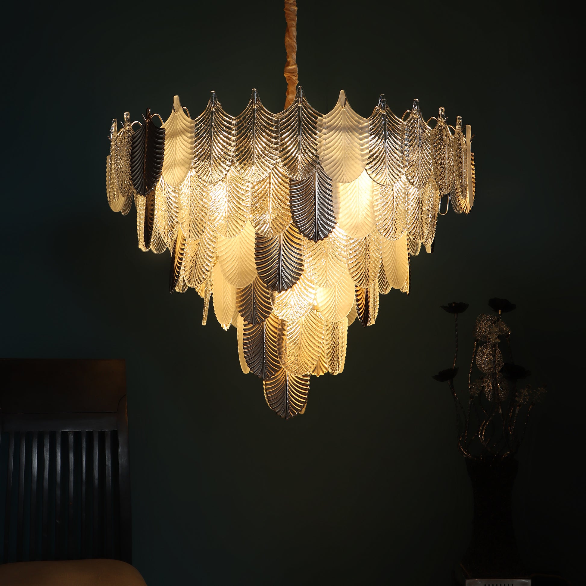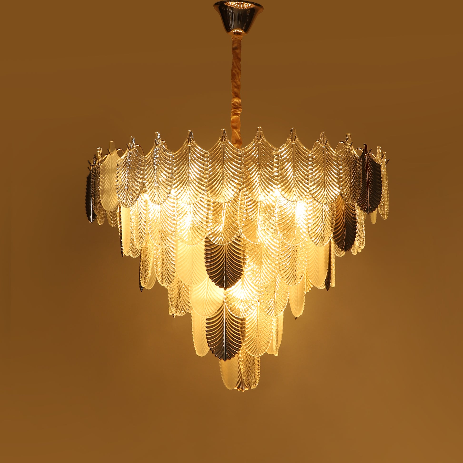 ORREN WHITE & GOLD GLASS CHANDELIER IN GOLD FINISH : We bring you this season's newest showstopper. Beautiful teal blue-green & gold glass petals come together to create magic like never before! Take home this stunner & create some Milan style magic!